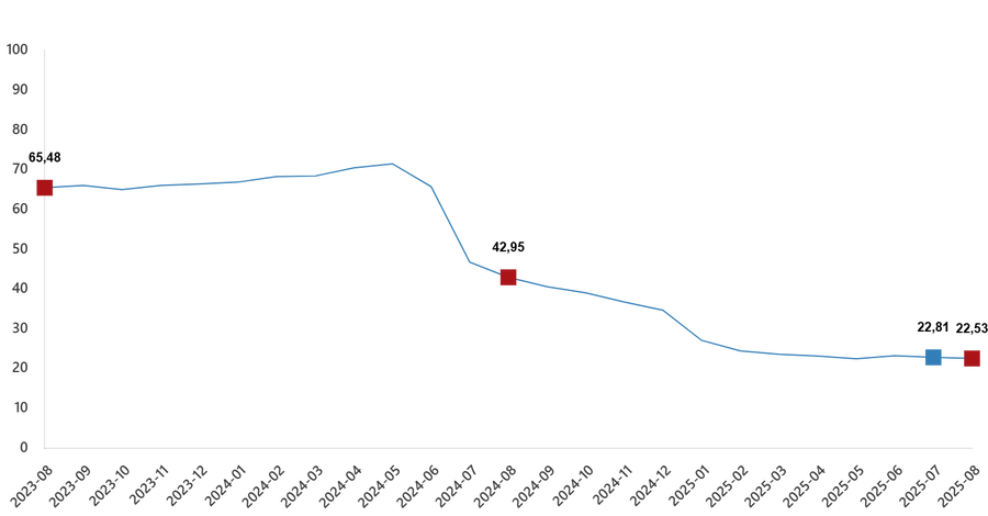 İnşaat maliyet endeksi yıllık değişim oranları(%), Ağustos 2025