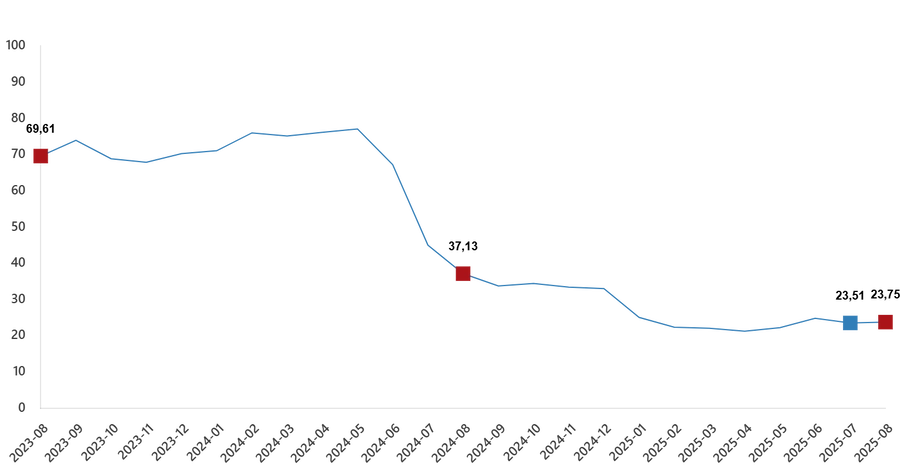 İnşaat maliyet endeksi yıllık değişim oranı(%), Ağustos 2025