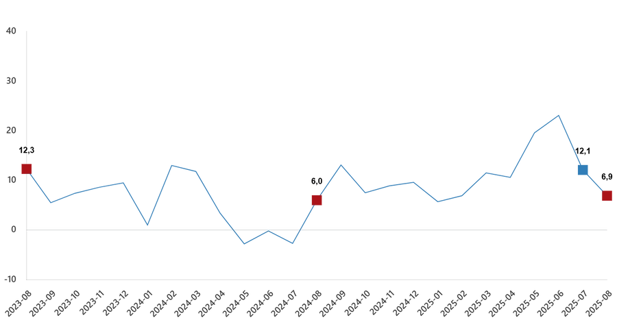 Ticaret satış hacmi yıllık değişim oranı (%), Ağustos 2025