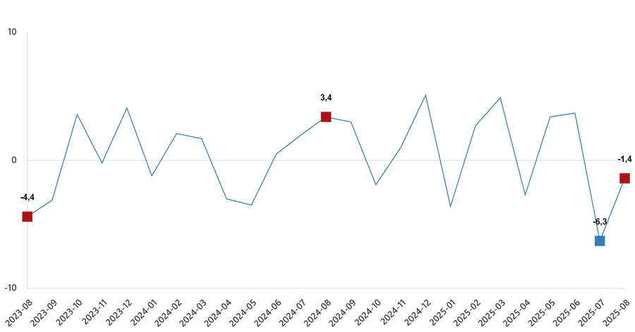 Ticaret satış hacmi aylık değişim oranı (%), Ağustos 2025
