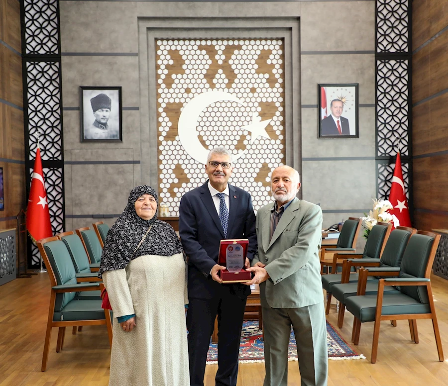 Niğde Valisi Cahit Çelik, Niğde Merkez Cami ve Kur’an Kursu inşaatına verdikleri katkılardan dolayı Tenzile Gök, Nurettin Bilgin ve Şehriban Bilgin’e teşekkür plaketi takdim etti.