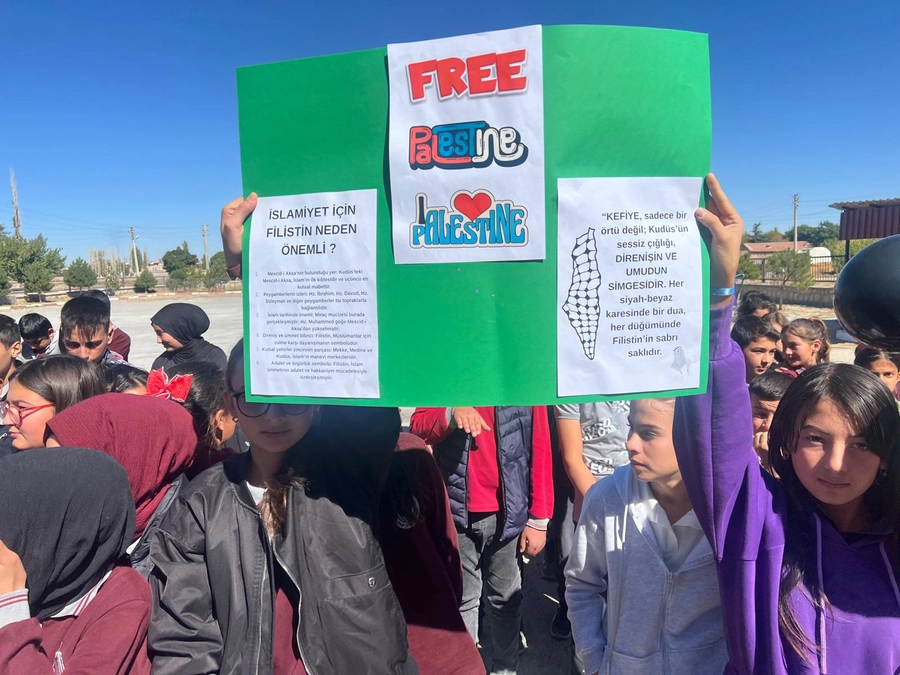 Yeşilgölcük Anadolu İmam Hatip Lisesi öğretmenleri ve öğrencileri, etkinlik boyunca Filistin halkına destek mesajları verdi. Katılımcılar, Filistin’deki çocuklar için yapılan dua sırasında duygusal anlar yaşadı.